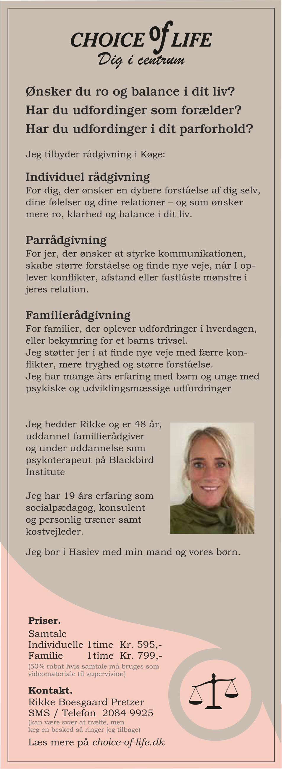 For information omkring priser, kan du kontakte mig for at få en pris omkring forløb, foredrag og andet.